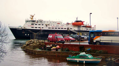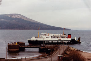 Isle of Arran, like her two recent predecessors, used her bow visor and ramp at Ardrossan (or Gourock in inclement weather) and her stern at Brodick to load up to 76 cars on each sailling. But even with this level of capacity for cars, traffic levels still continued to increase and the Isle of Arran fell victim to her own success and so in 1993 she was cast aside in favour of the brand new Caledonian Isles - by far the grandest ship to serve Arran in terms of facilities on board, but not necessarily the most aesthetically pleasing to the eye!