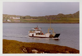 The new ferry had a capacity of 4 cars, although from the outset it was agreed that only islanders’ vehicles and essential commercial vehicles should be allowed on the island. The Morvern was of a deeper draught than the craft she replaced and as a result had to detour to the south of the sand bank which lies in the middle of the Sound of Iona. At low tides she often had to go quite far down the Sound before crossing to the far side and coming back up, parallel to the shoreline. This of course was a problem the previous vessels did not suffer from.