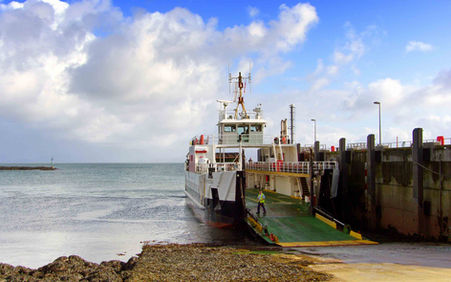 The new ferry was a unique design. Her car deck could hold up to 14 cars (more recently reduced to 10 or 11) and this was accessed by means of a huge stern ramp - quite unlike anything seen before in the fleet. The reason for this large ramp was that she was designed to be able to load directly from any linkspan or slipway on her travels without the risk of grounding and damaging her propellers. Initially the Lochnevis continued with the tried and tested practise of meeting flitboats at Rum, Eigg and Muck. Only at Canna was there a pier to berth at for the first couple of seasons. Slipways were soon under construction and from 2003 she was able to use her mighty stern ramp at all but Canna.