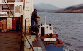 It was a good thing that the new ferry was ordered when she was and she arrived not a day too soon for the Loch Arkaig had suffered the undignified mishap of sinking at her berth at Mallaig earlier on in 1979. Between this unfortunate incident and the new Lochmor arriving, the Small Isles, as they are known, were served by vessels ranging from the former Clyde ferry Arran to the tiny bow-loading Coll of 1973.