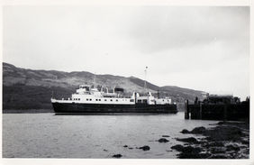 “Monday 4th January 1954 was fine... The 12.10 pm run [from Gourock to Dunoon] was to be taken by Arran and she was busy loading cars and passengers at Berth A. The Dunoon folk had turned out in force to witness her arrival – there were no pier dues on this occasion – and cheered loudly as she approached. Lord Inverclyde, representing the Scottish Tourist Board, cut a white ribbon to allow the first car, driven by the Secretary of the Royal Scottish Automobile Club, to pass from the ship on to the pier. The car ferry era had begun.